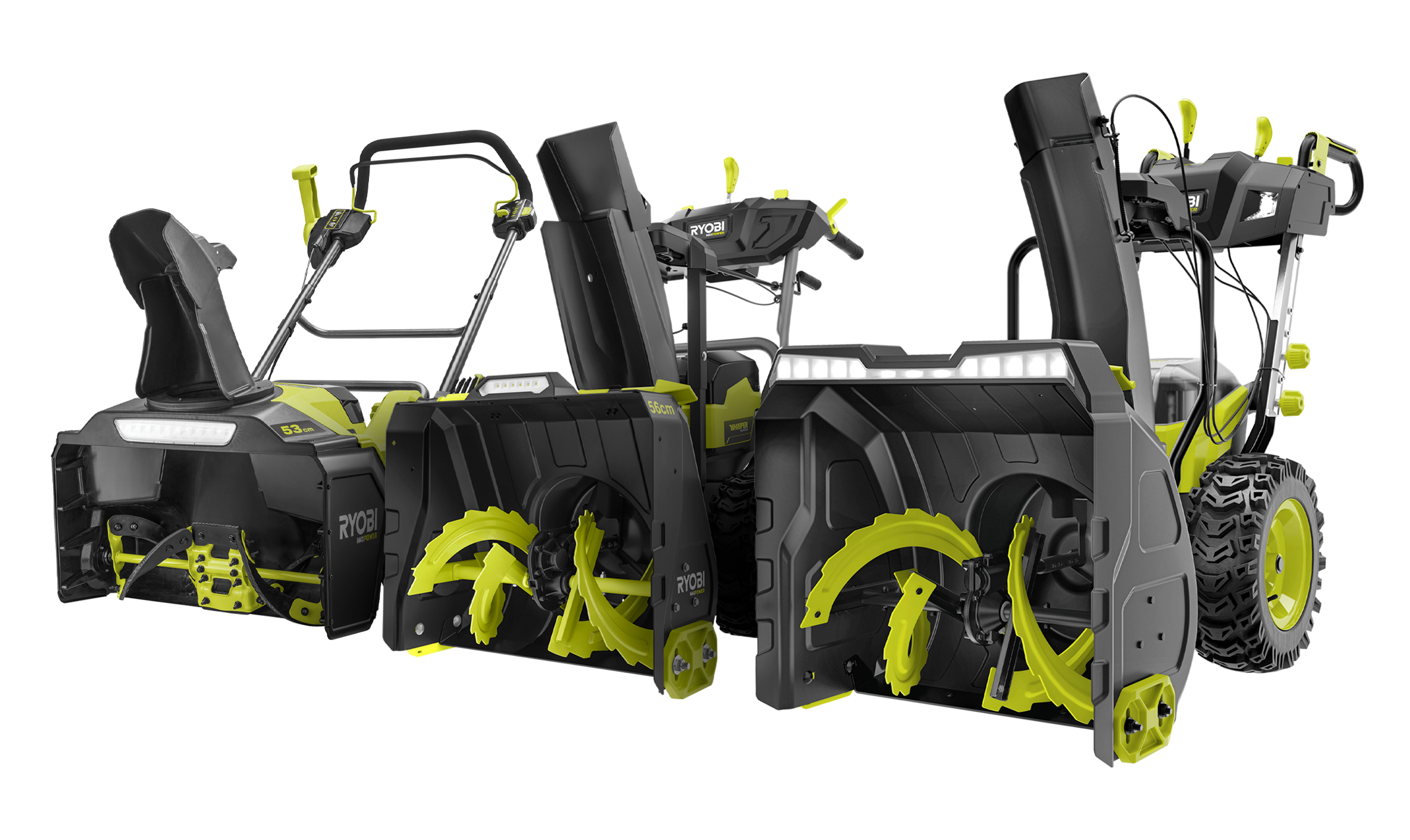 36V akumuliatorinių sniego valytuvų asortimentas iš RYOBI