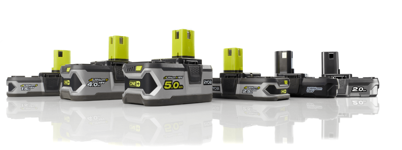 Rinkitės iš ŠEŠIŲ skirtingų akumuliatorių dydžių, kurie atitiktų jūsų poreikius. Nuo didžiausios talpos akumuliatoriaus (5,0 Ah) iki mažiausios (1,3 Ah). Kiekvienas akumuliatorius yra ONE+, o tai reiškia, kad jis tinka bet kuriam įrankiui ONE+*.